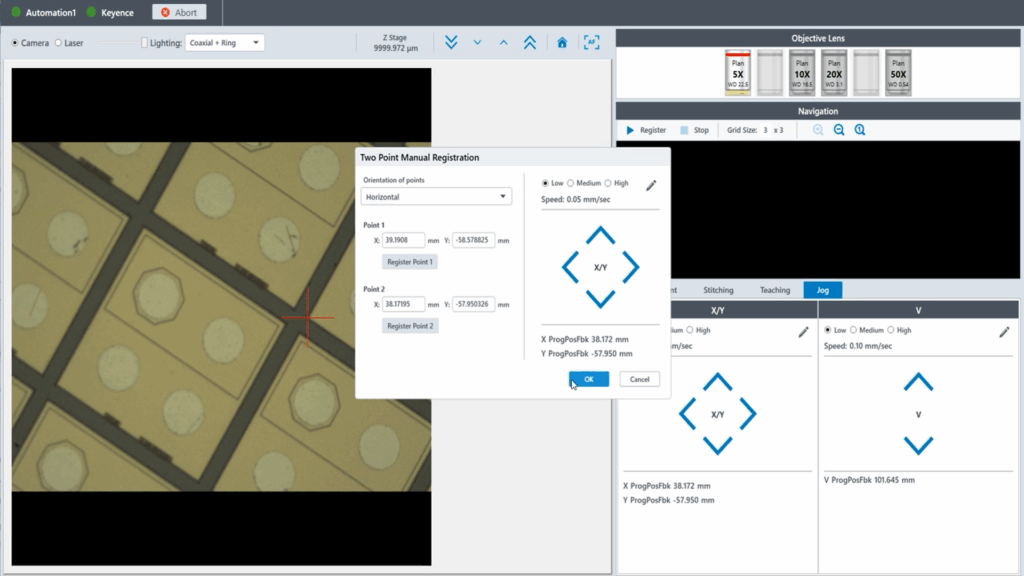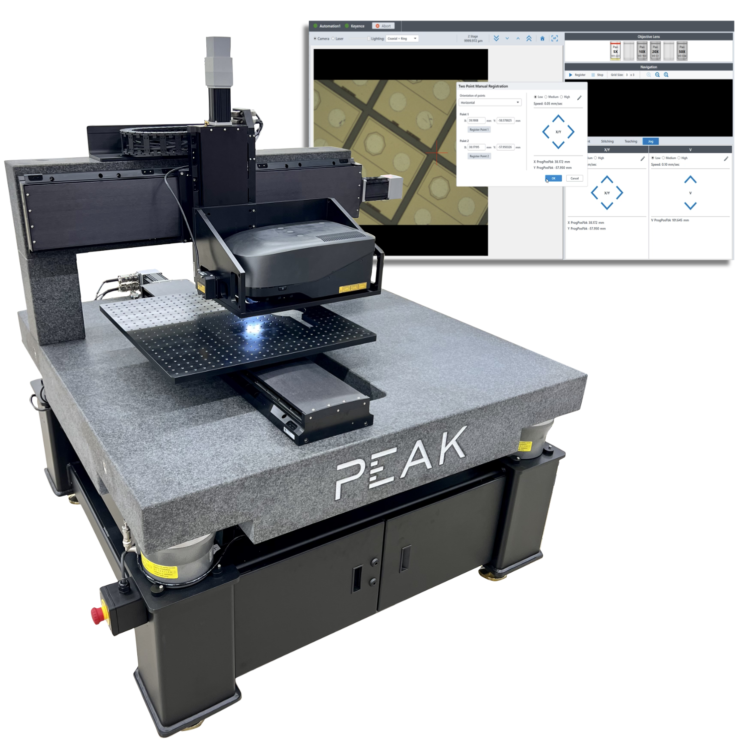 Use the standard Keyence VK Viewer software or Peak’s additional automation software to control larger stages.